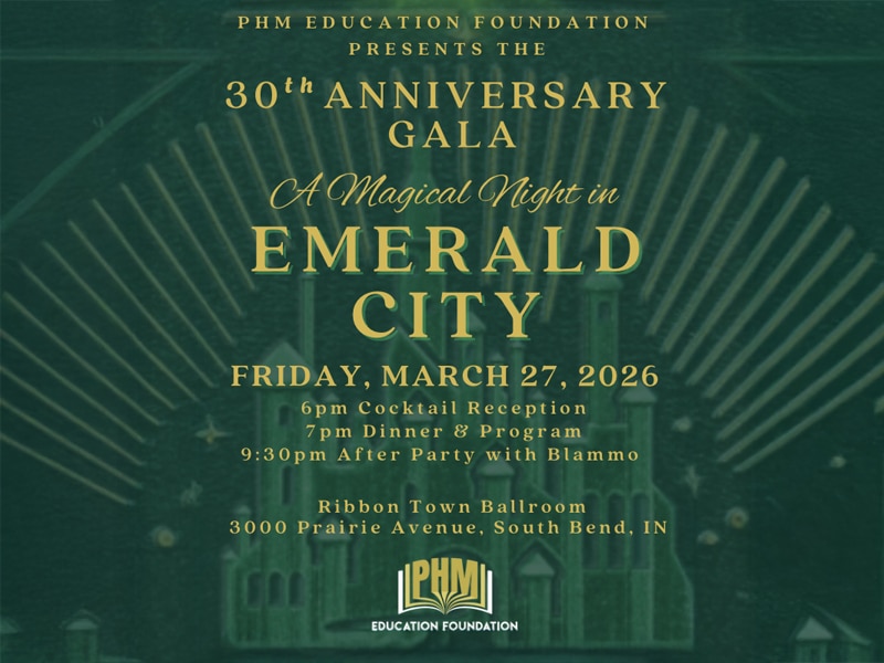 Mark your calendars! The PHM Education Foundation invites you to celebrate its 30th Anniversary Gala, A Magical Night in Emerald City, on Friday, March 27, 2026. The evening will take place at the Ribbon Town Ballroom, located at 3000 Prairie Avenue in South Bend, IN.